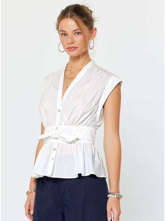Willa Scallop Studded Crop Denim -White
