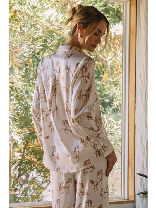 Horse Print Button Down Blouse